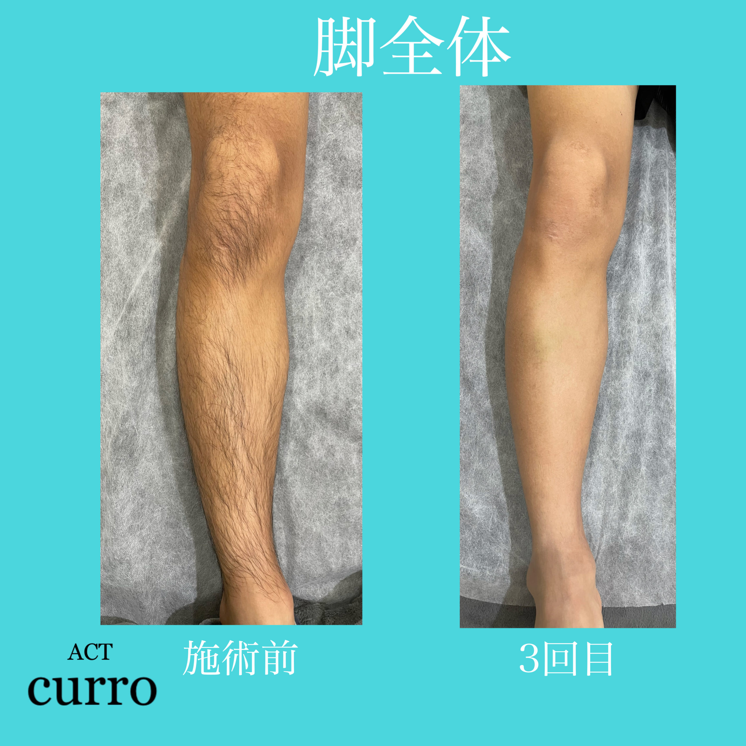 ヒザと足首周りがまだしっかり毛が生えてきています。