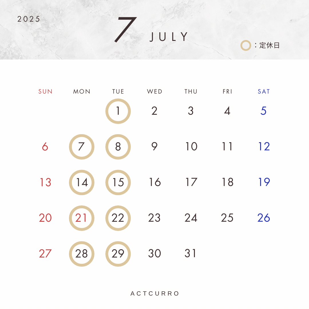 7月の休みのお知らせ